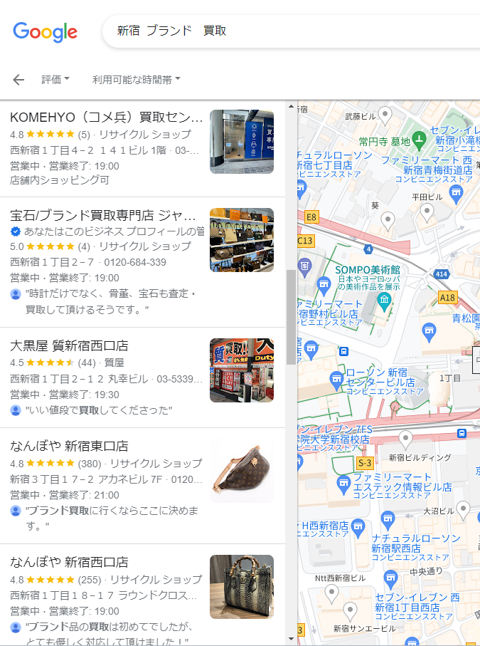 多くの優れたブランド品買取店が新宿に点在していますが、Googleで上位表示された